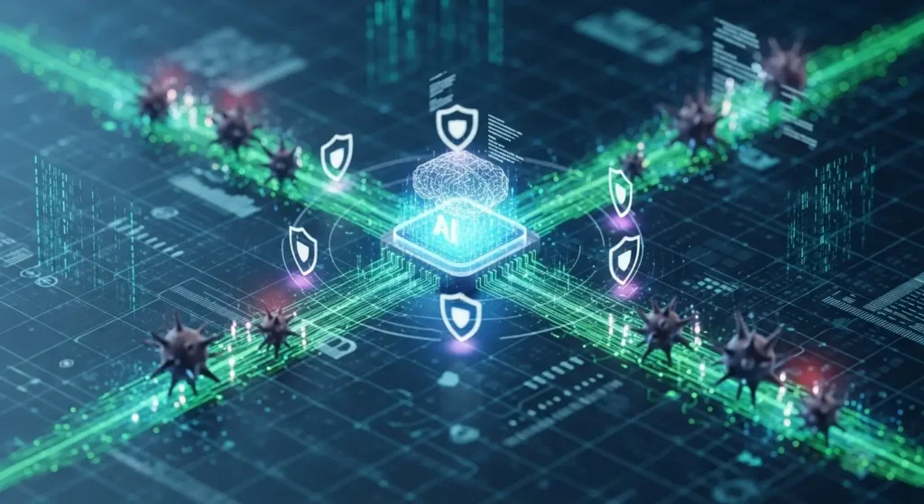 Example: AI systems can automatically block malicious IP addresses, isolate infected devices, or quarantine suspicious accounts when a threat is detected. By automating these processes, AI significantly reduces human error and enhances the overall efficiency of security operations.